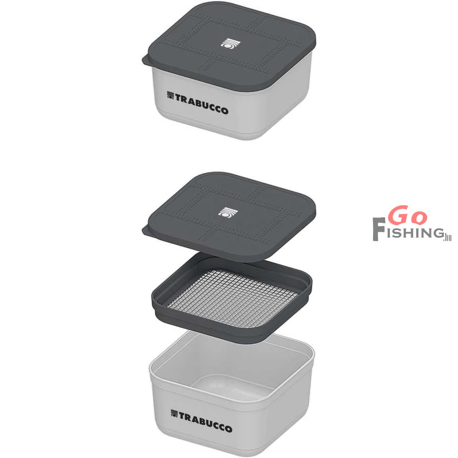 Trabucco Baitsafe Box 1,6l vent & mesh riddle, szellőző csalitartó doboz hálós betéttel