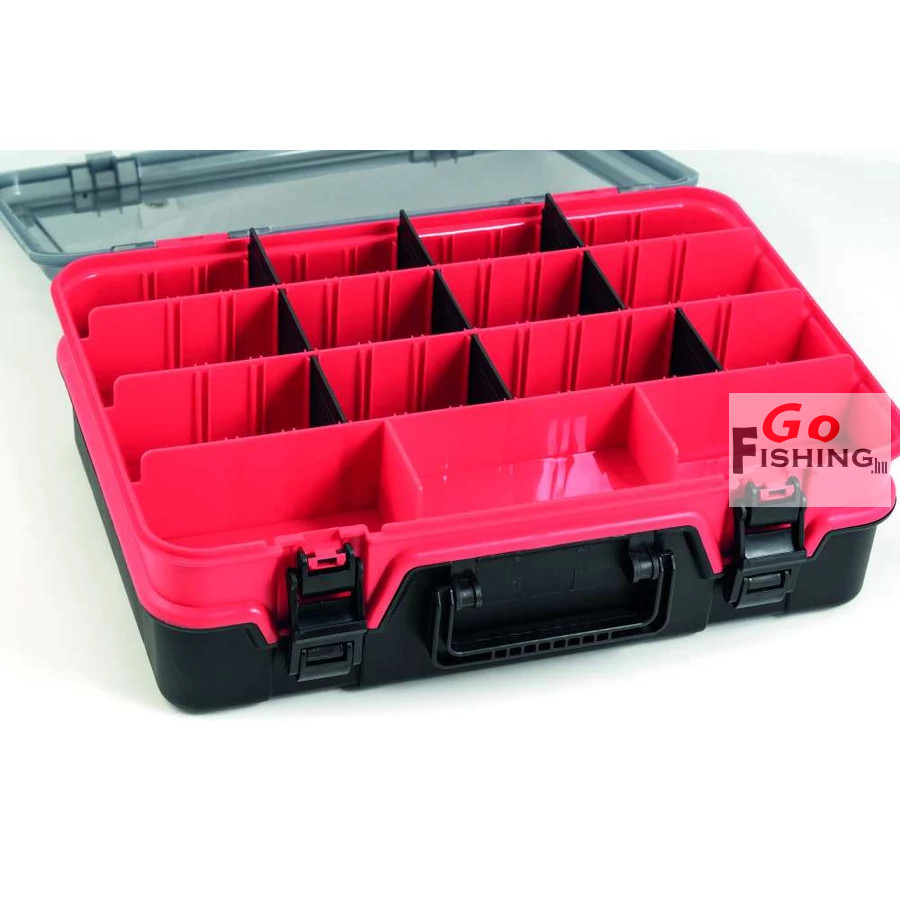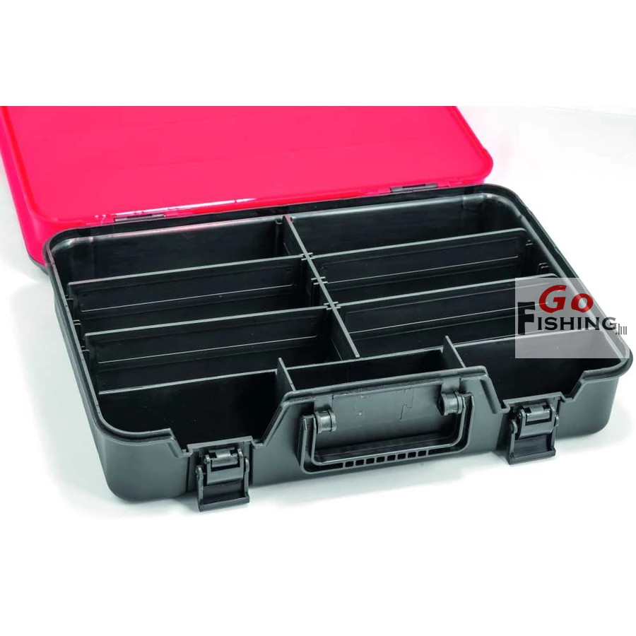 A doboz erős, mégis könnyű kialakítású, anyaga nagy teherbírású ABS és polikarbonát, amely tartós használatot tesz lehetővé. A felső tálca 5 cm mély, átlátszó fedéllel és kivehető elválasztókkal rendelkezik, míg az alsó tálca 7 cm mély, és az elválasztók eltávolításával egy nagyobb, egybefüggő tárolórekesz alakítható ki.
